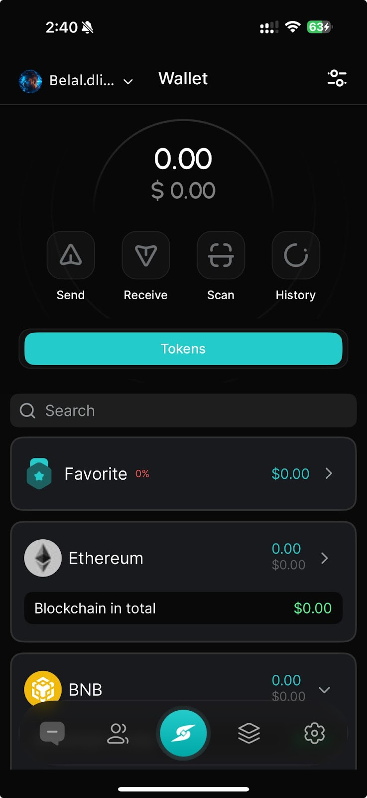 من شاشة المحفظة، اضغط على Receive (استلام).