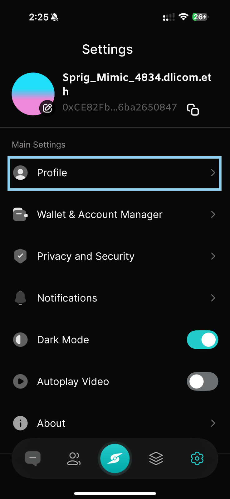 Inside the Settings page, you’ll find all the options to manage and customize your account, including Profile, Wallet, Privacy, Notifications, and more.