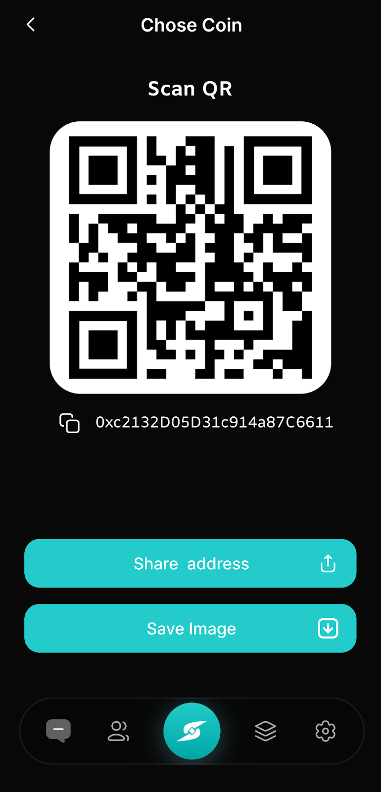 - Tap Share Address to send your wallet address directly.